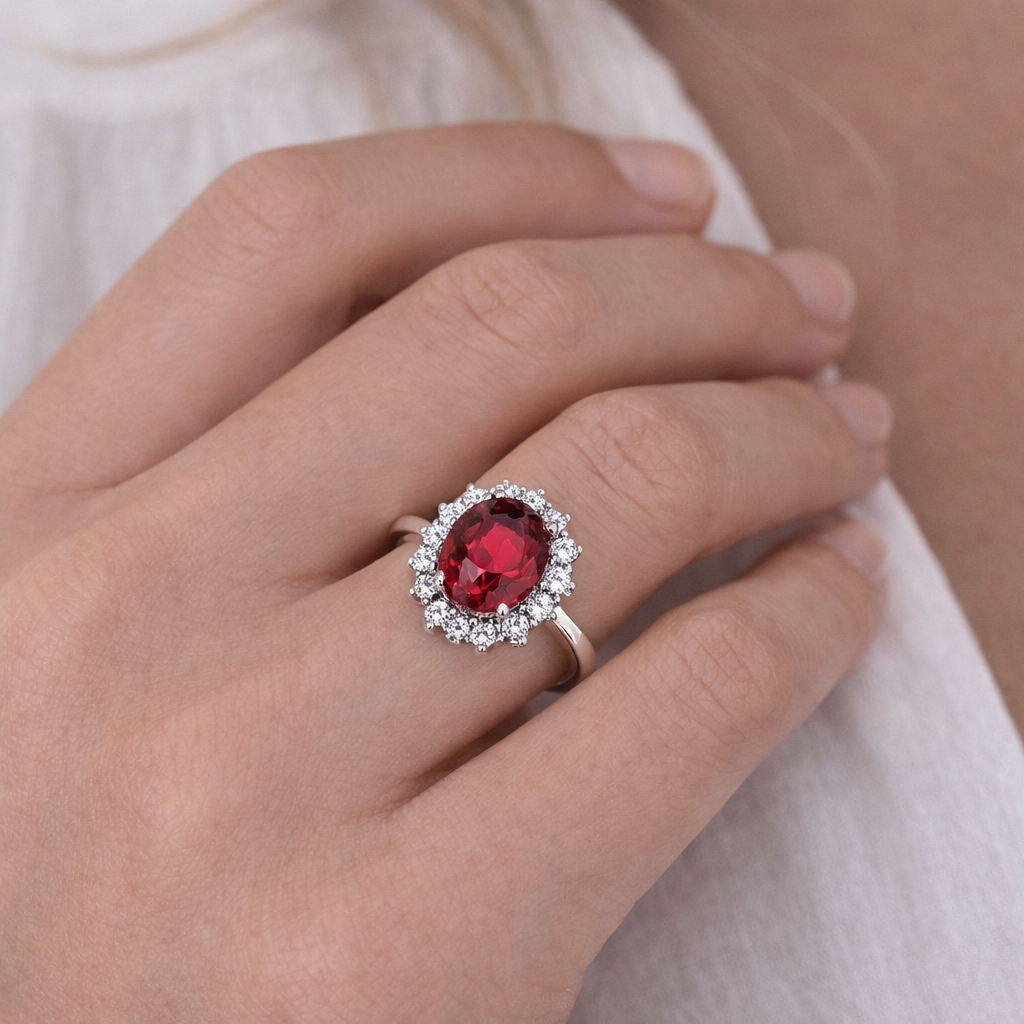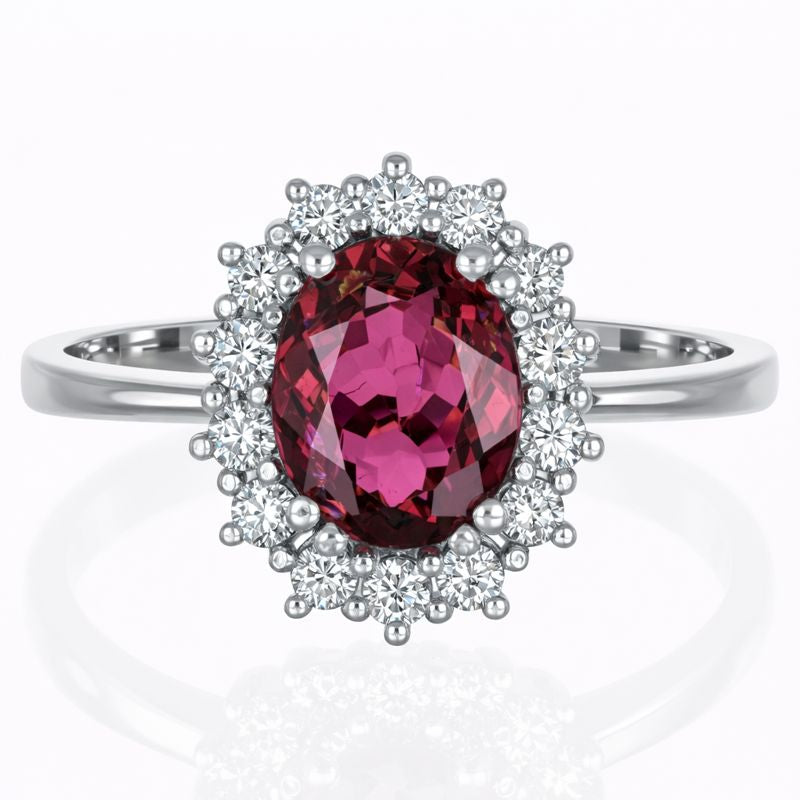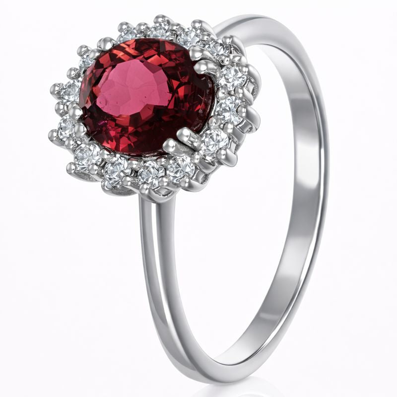 Anello in oro Bianco 18 carati con n 1 Tormalina rosa da 1.55 Ct e n 14 Diamanti da 0.42 Ct tot