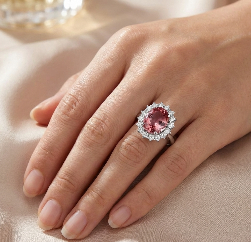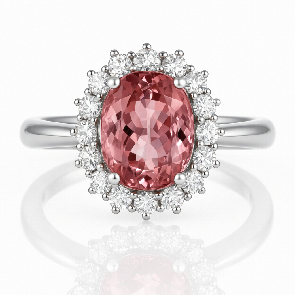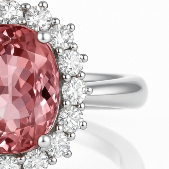 Anello in oro bianco 18 carati con n 1 Tormalina da 2.57 Ct e n 16 Diamanti da 0.32 Ct tot