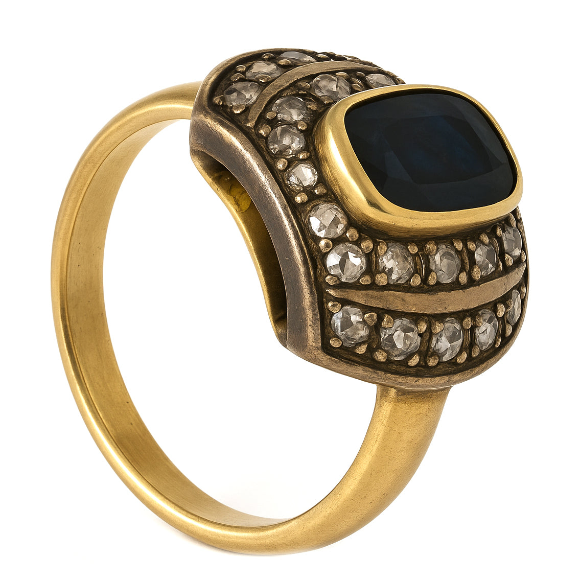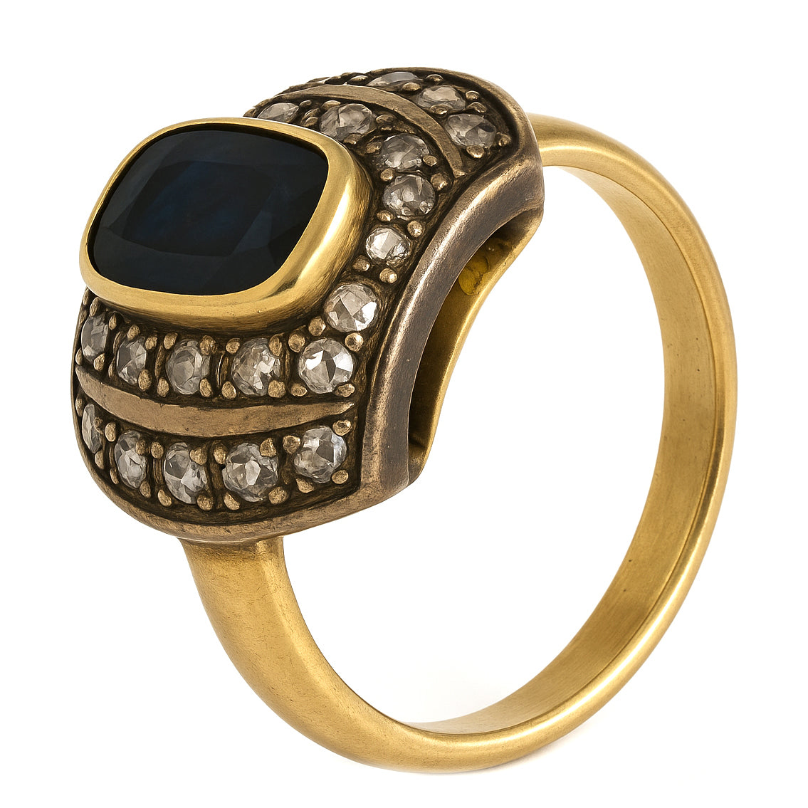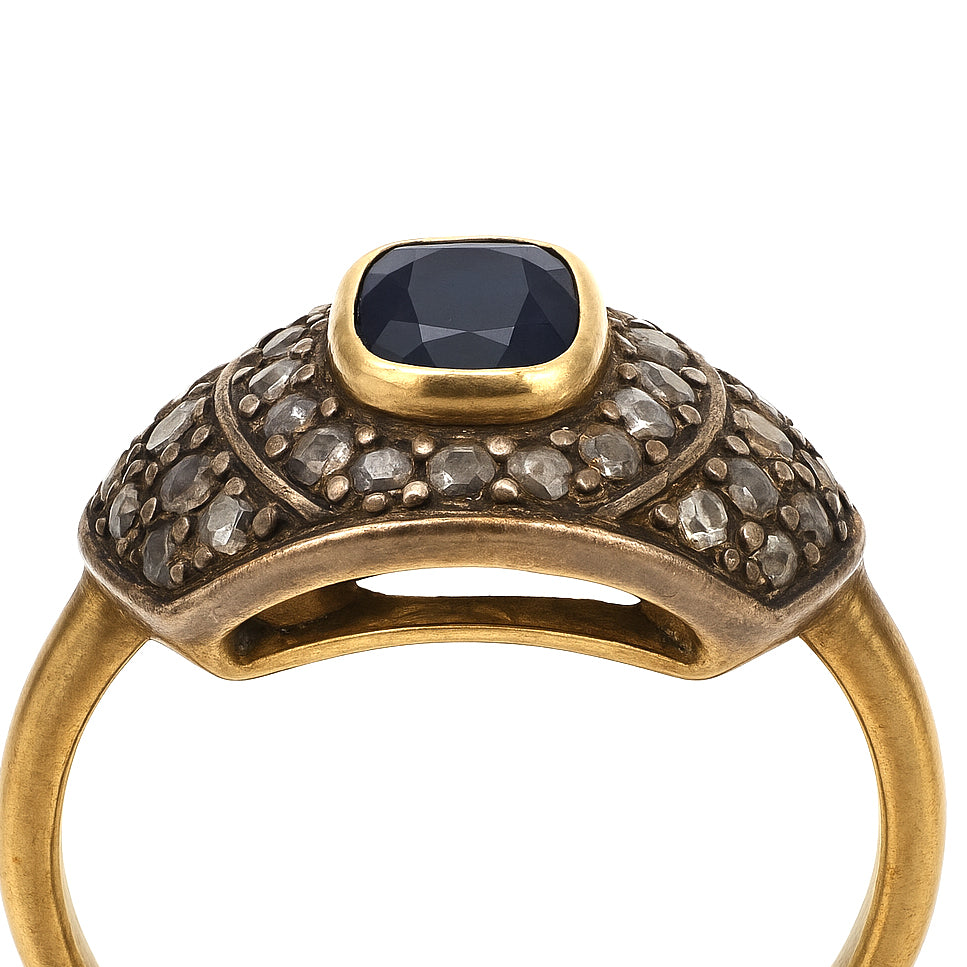 Anello in Oro giallo 18 carati e Argento 800- Zaffiro Diamanti