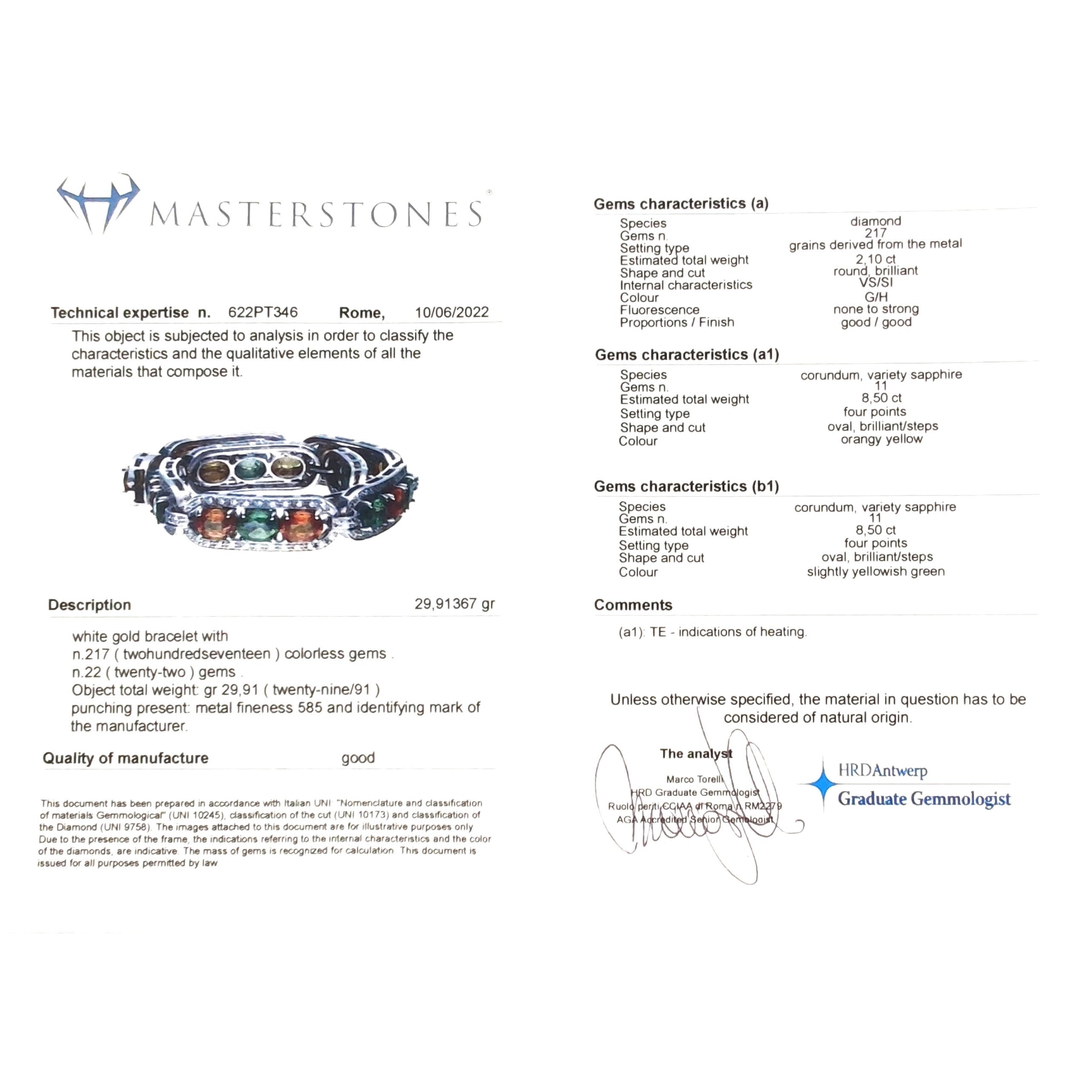 Certificato Masterstones n 622PT346