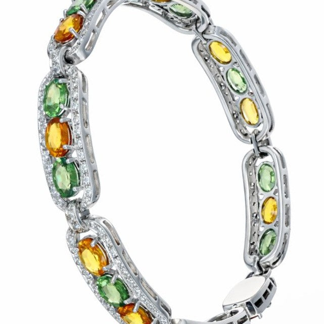 Bracciale in oro bianco 14 carati con n 22 Zaffiri da 17.00 Ct tot e n 217 Diamanti da 2.10 Ct tot