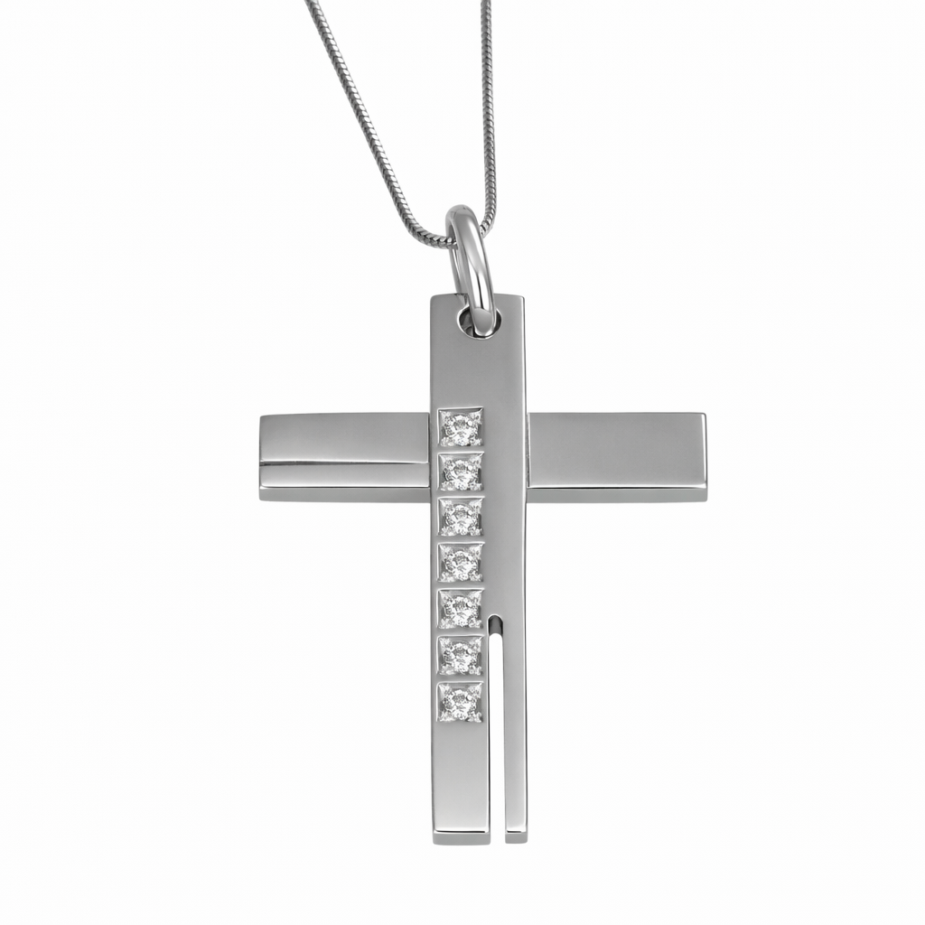 Collana con Ciondolo in oro bianco 18 carati con n  7 Diamanti da 0.105 Ct tot