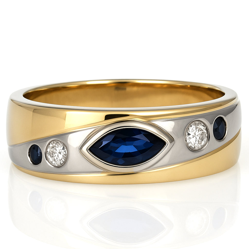 Anello - 18 carati Oro bianco, Oro giallo - 0.49ct. tw. Zaffiro - Diamante