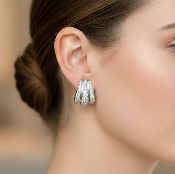 Orecchini in Oro bianco 18 carati con n 16 Diamanti da 0.005 Ct e 84 da 0,01 ct