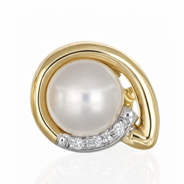 Orecchini - 18 carati Oro bianco, Oro giallo - 0.108ct. tw. Diamante (Naturale) - Perla 2 mm