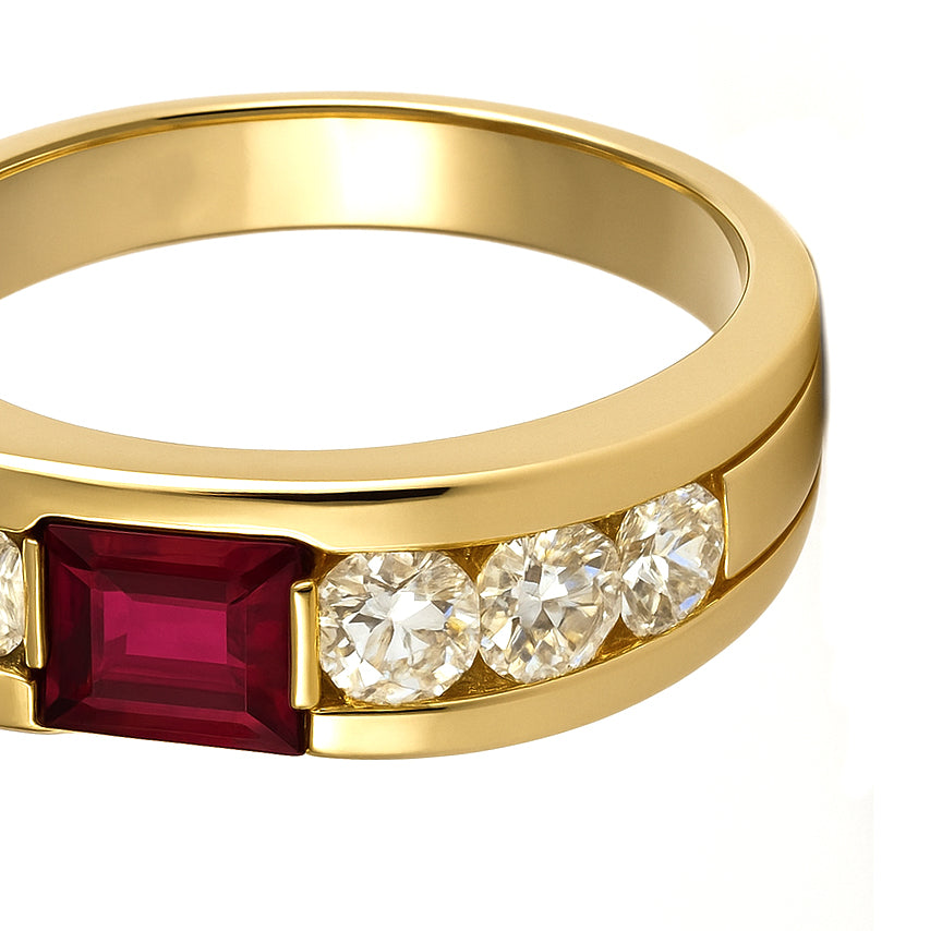 Anello in Oro Giallo 18 carati con n 1 Rubino da 0.30 Ct e n 6 Diamanti da 0.42 Ct tot