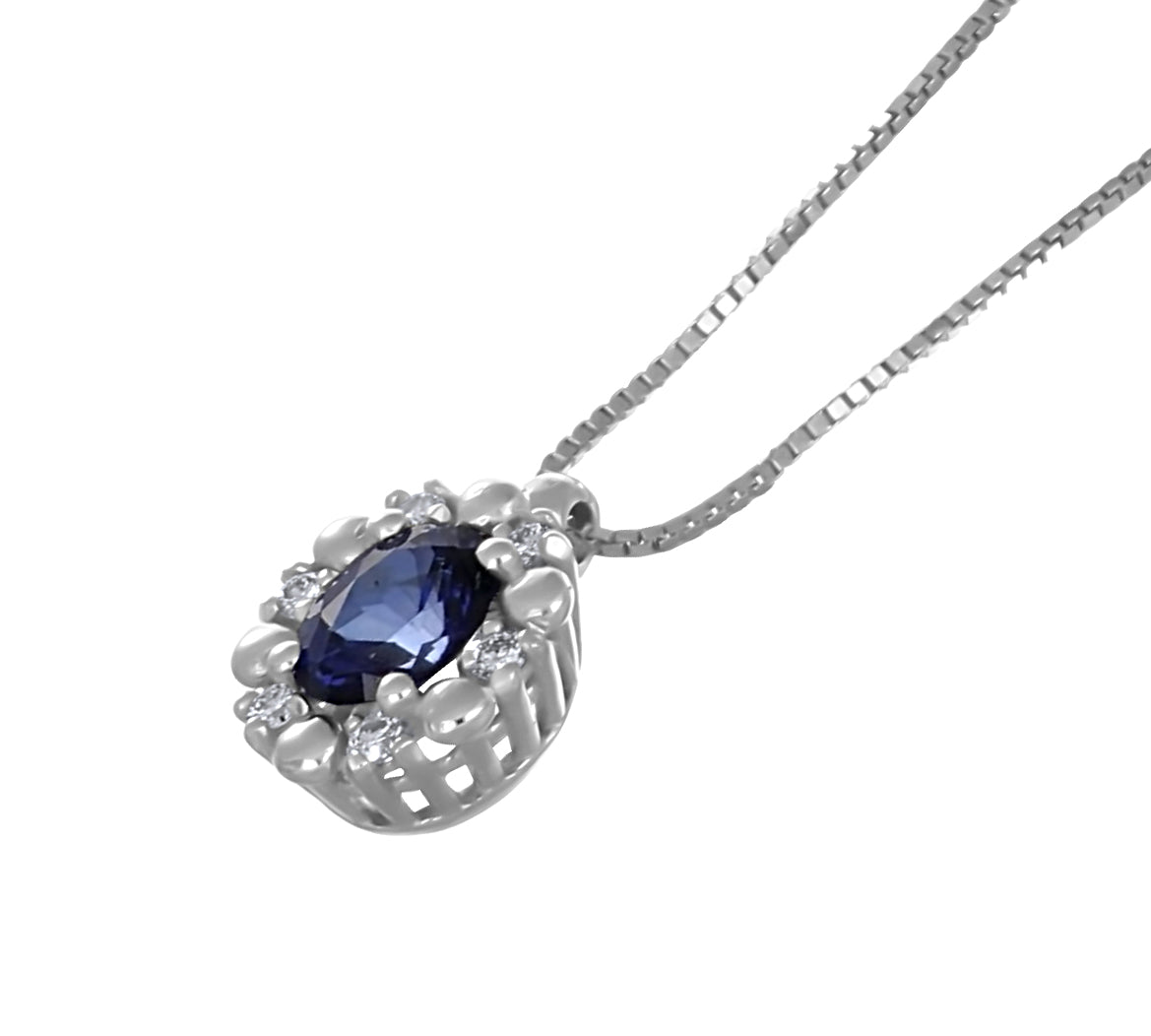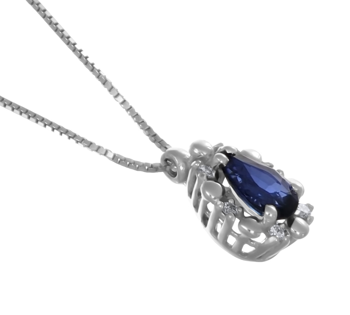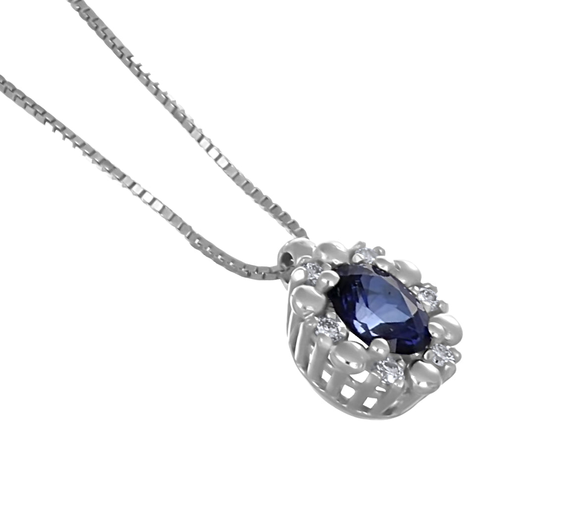 Collana con ciondolo - 18 carati Oro bianco - 0.76ct. tw. Zaffiro - Diamante