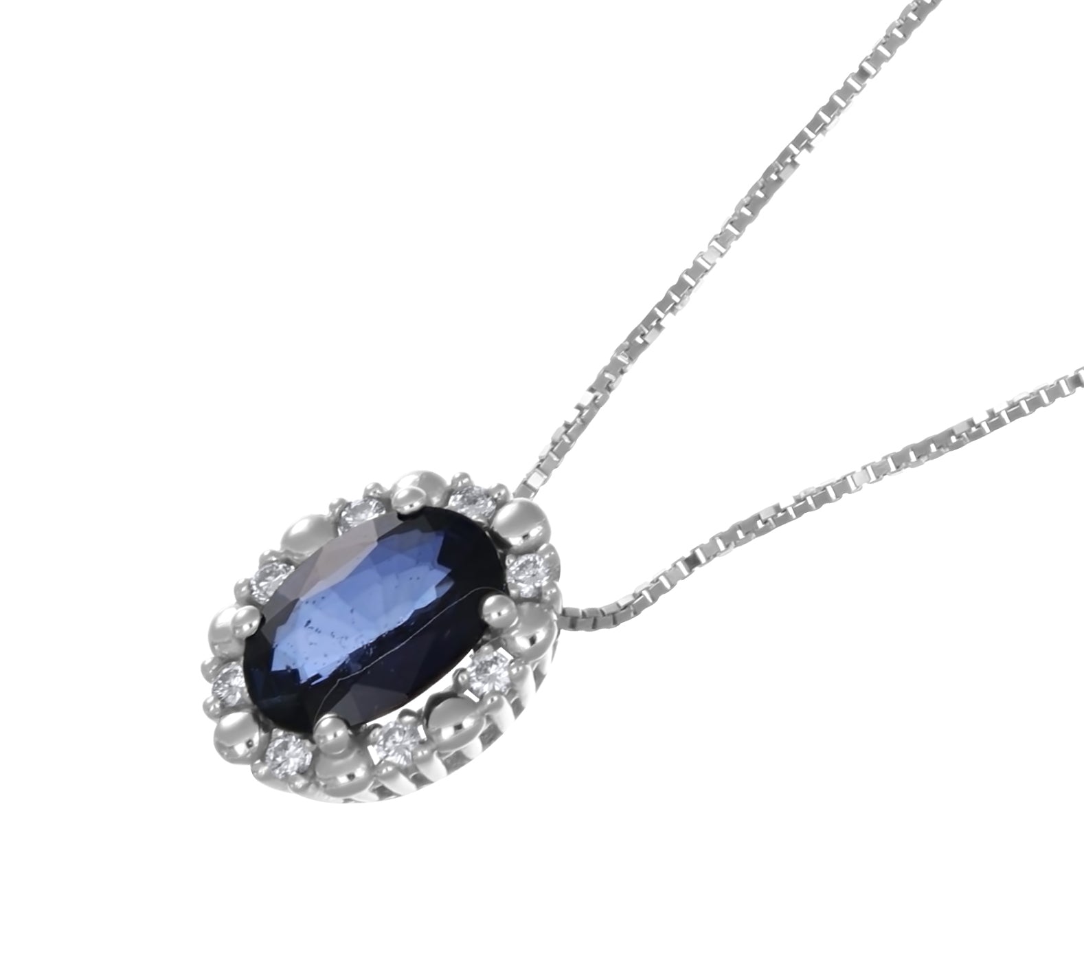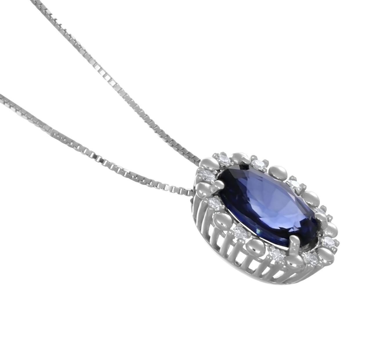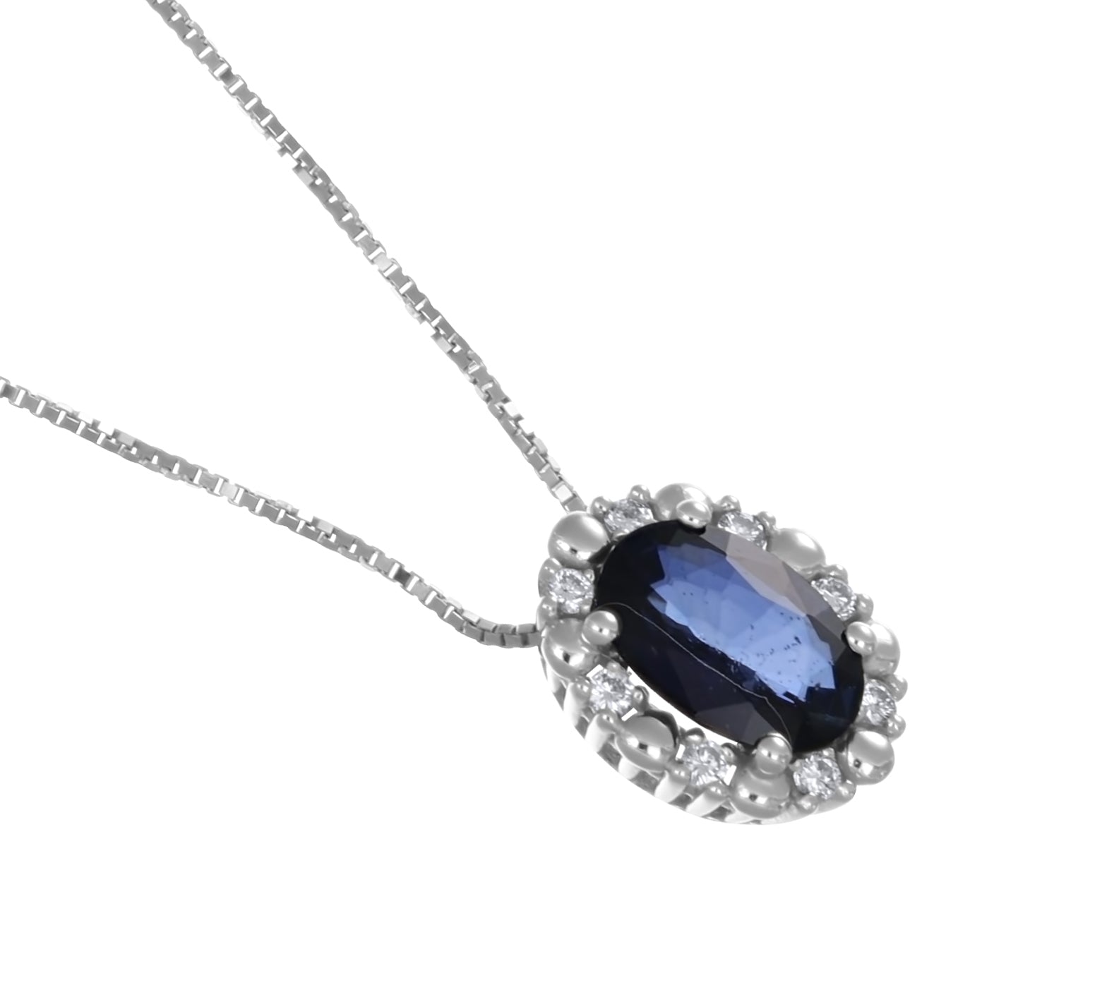 Collana con ciondolo - 18 carati Oro bianco - 0.86ct. tw. Zaffiro - Diamante