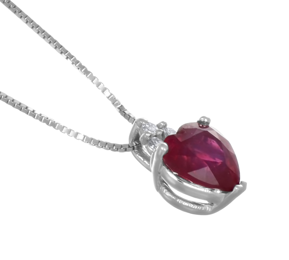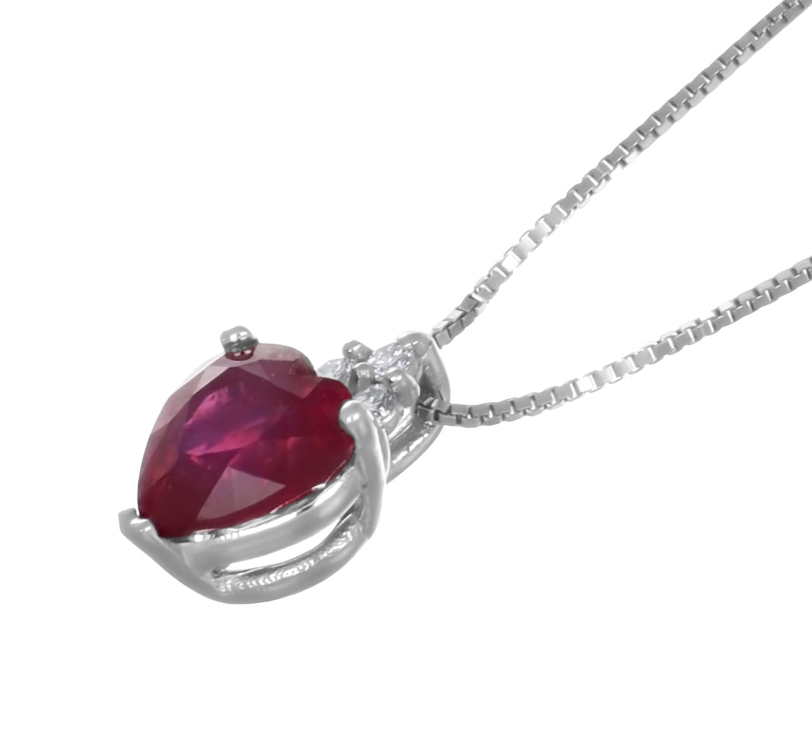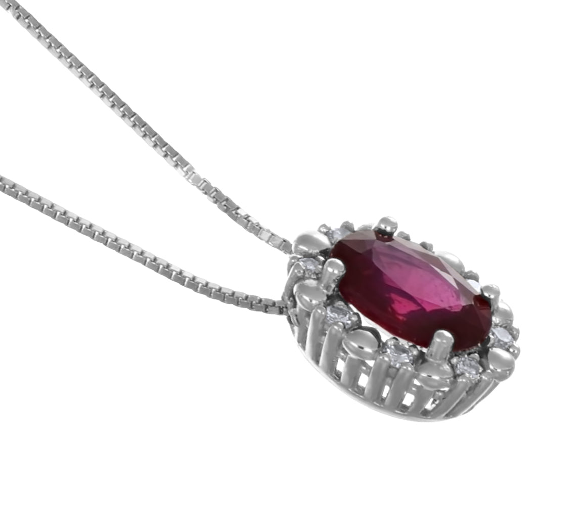 Collana con ciondolo - 18 carati Oro bianco - 1.03ct. tw. Rubino - Diamante
