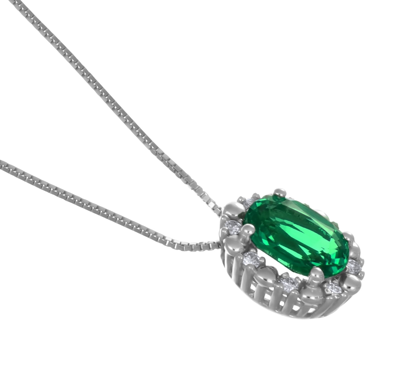 Collana con ciondolo - 18 carati Oro bianco - 1.44ct. tw. Tormalina - Diamante