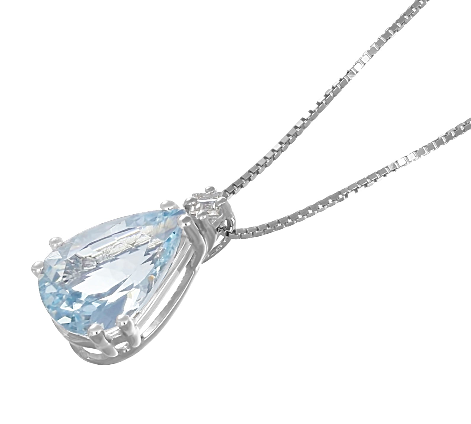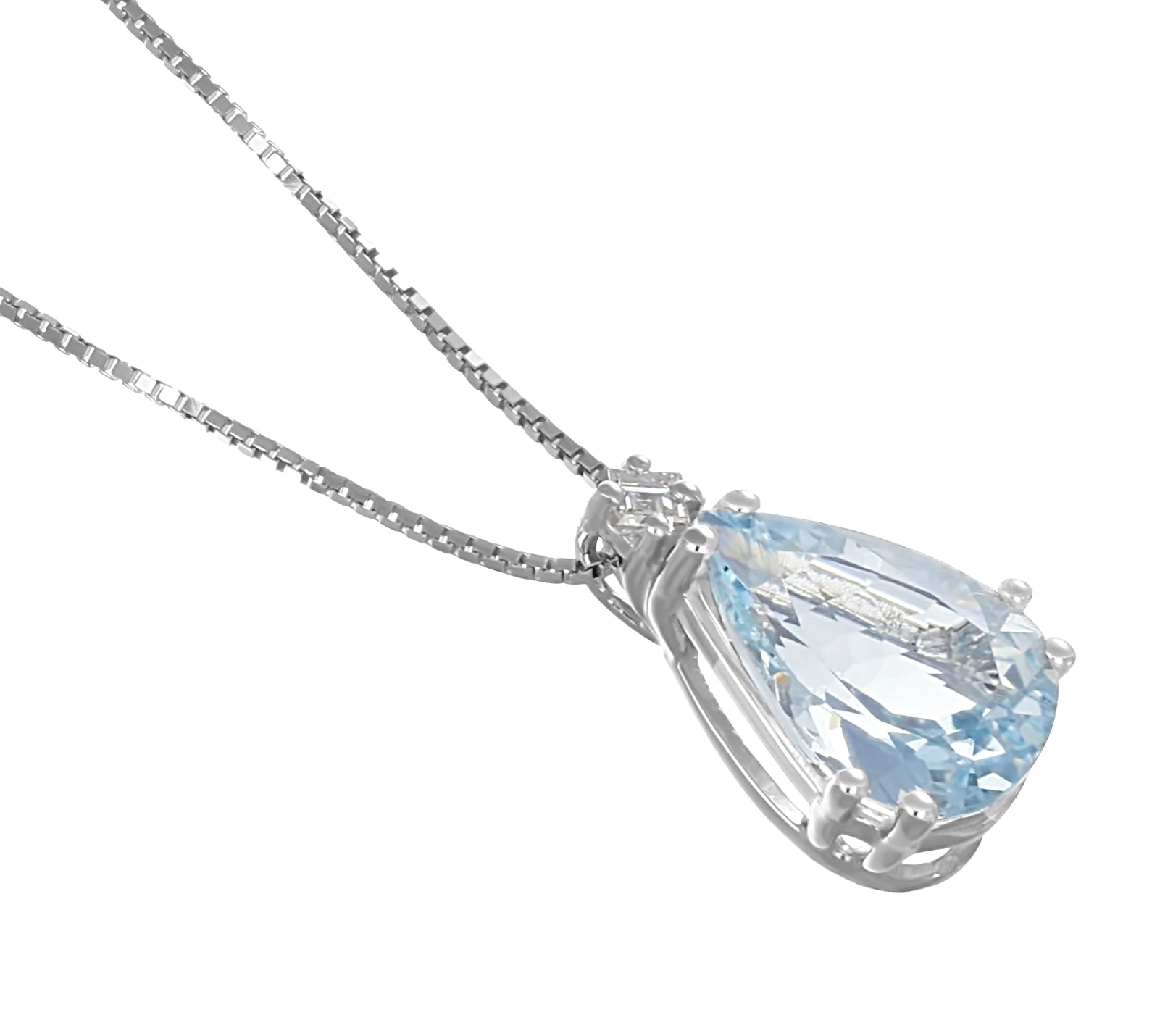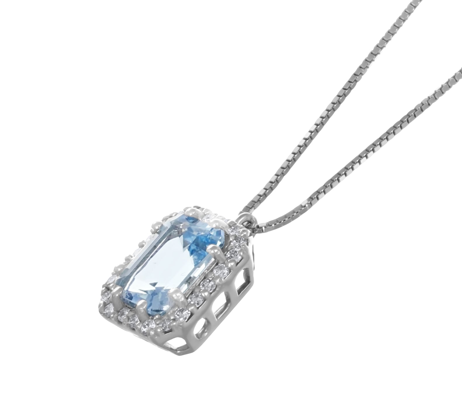 Collana con ciondolo - 18 carati Oro bianco - 1.98ct. tw. Acquamarina - Diamante