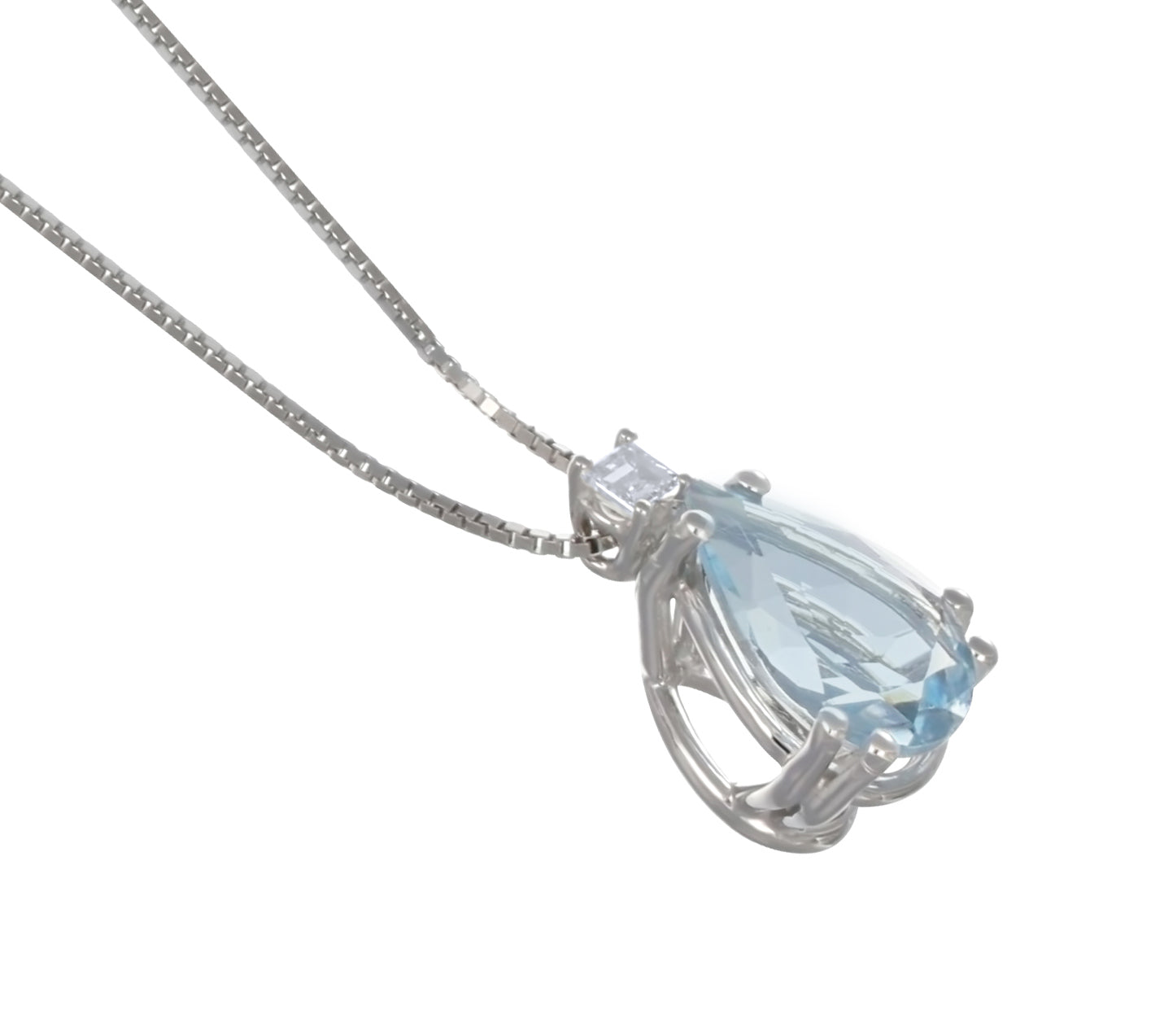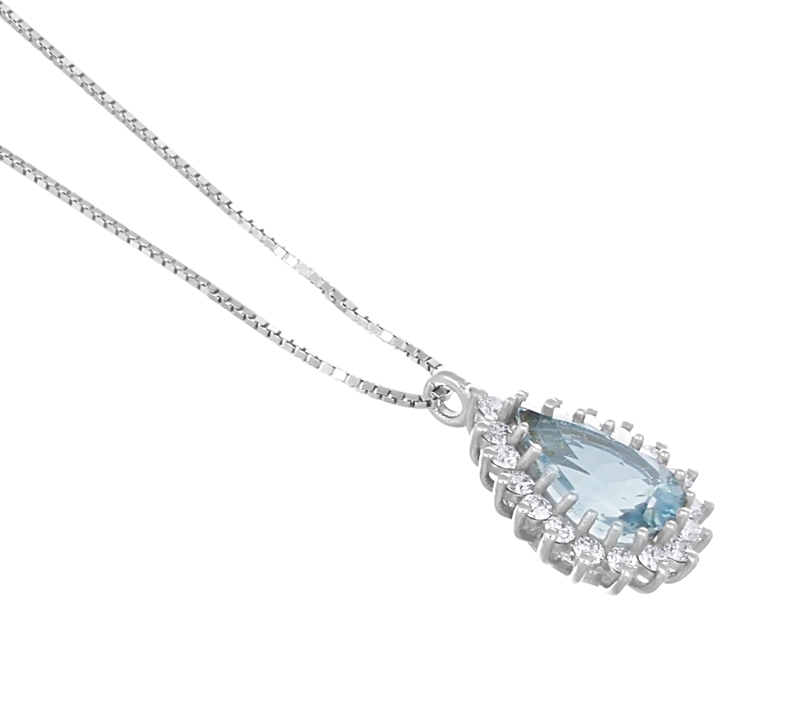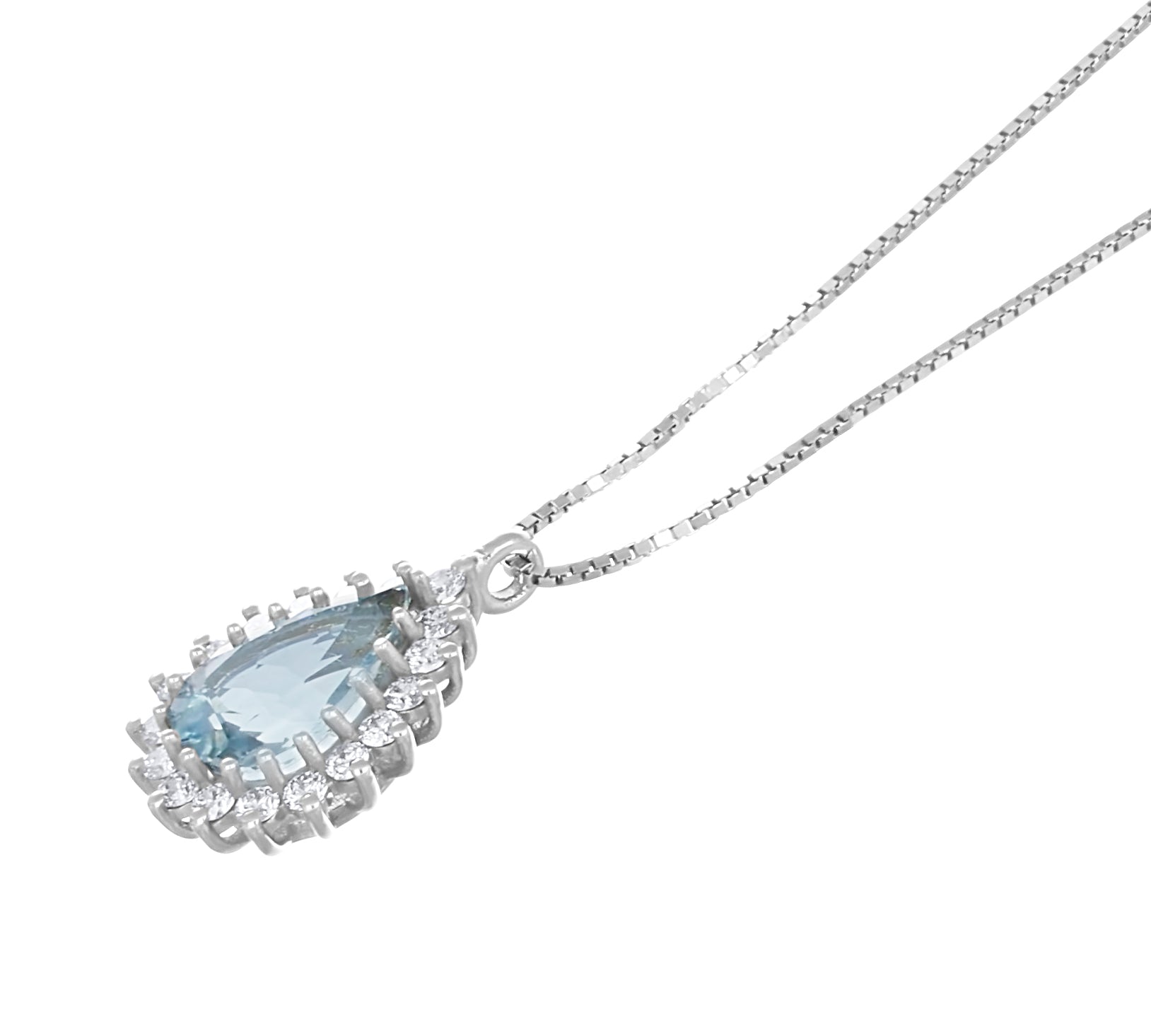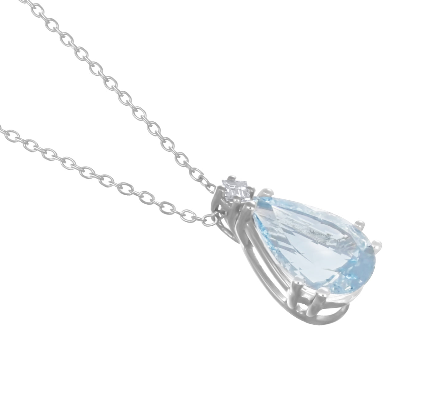 Collana con ciondolo - 18 carati Oro bianco - 1.98ct. tw. Acquamarina - Diamante