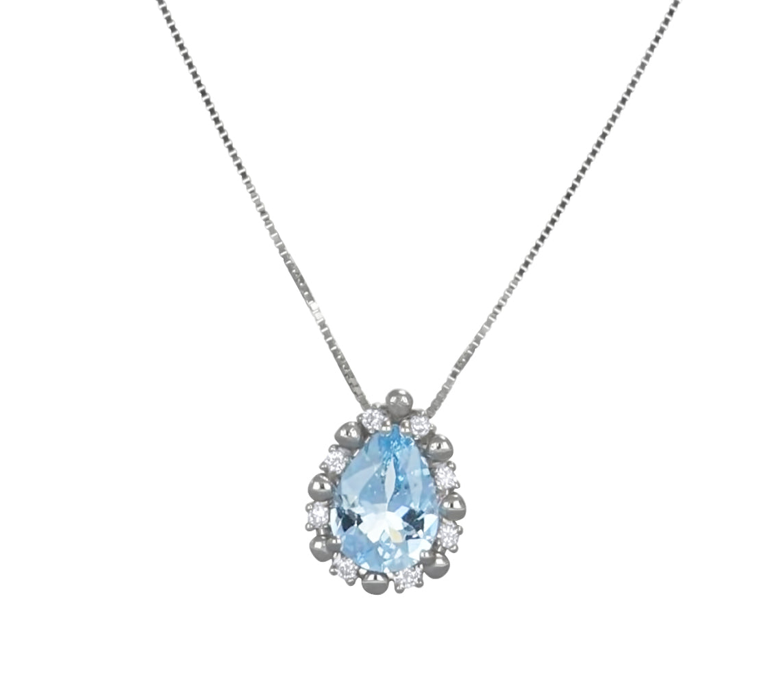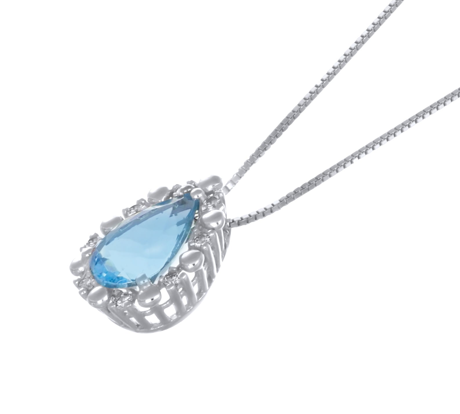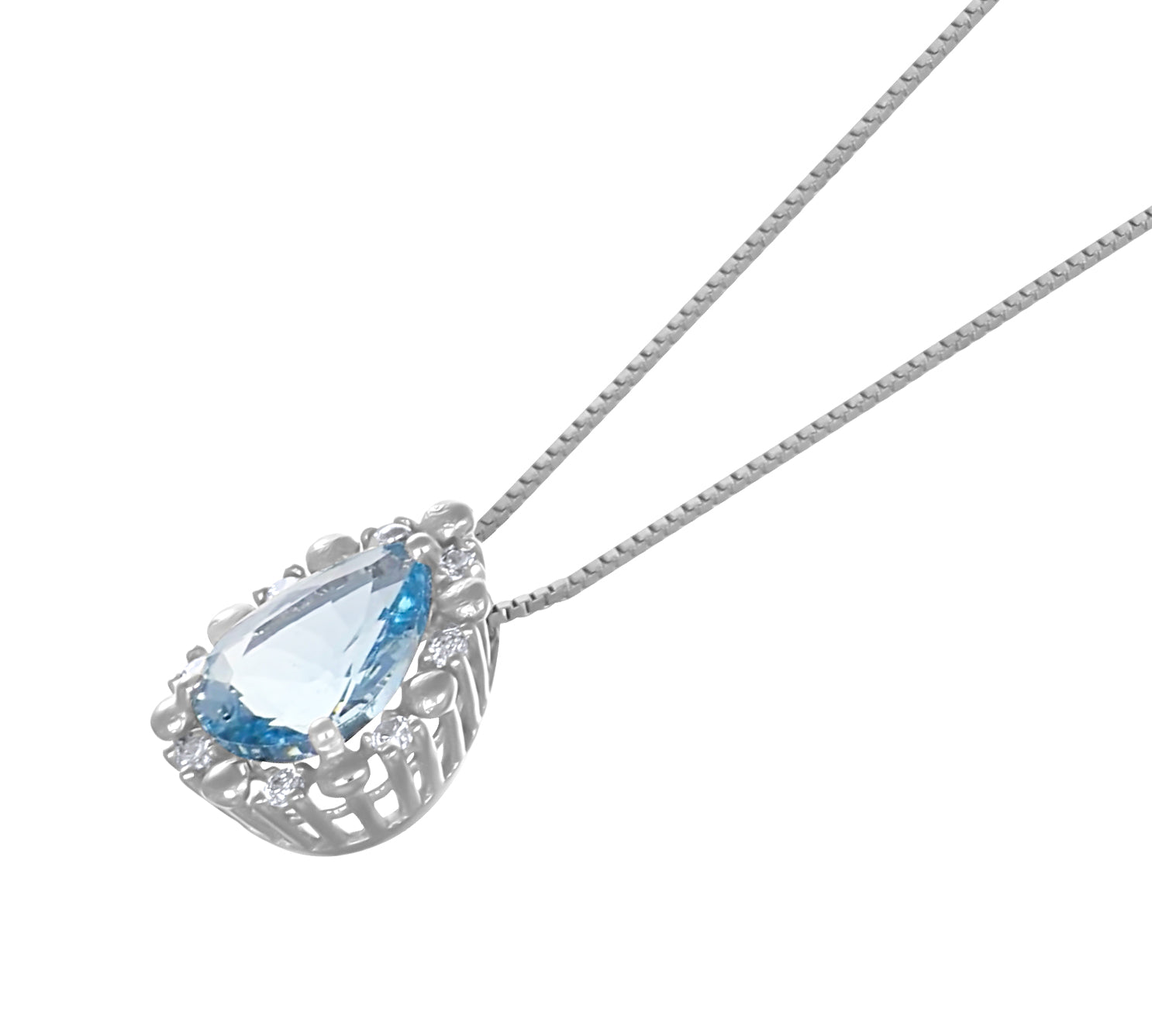 Collana con ciondolo - 18 carati Oro bianco - 0.32ct. tw. Acquamarina - Diamante