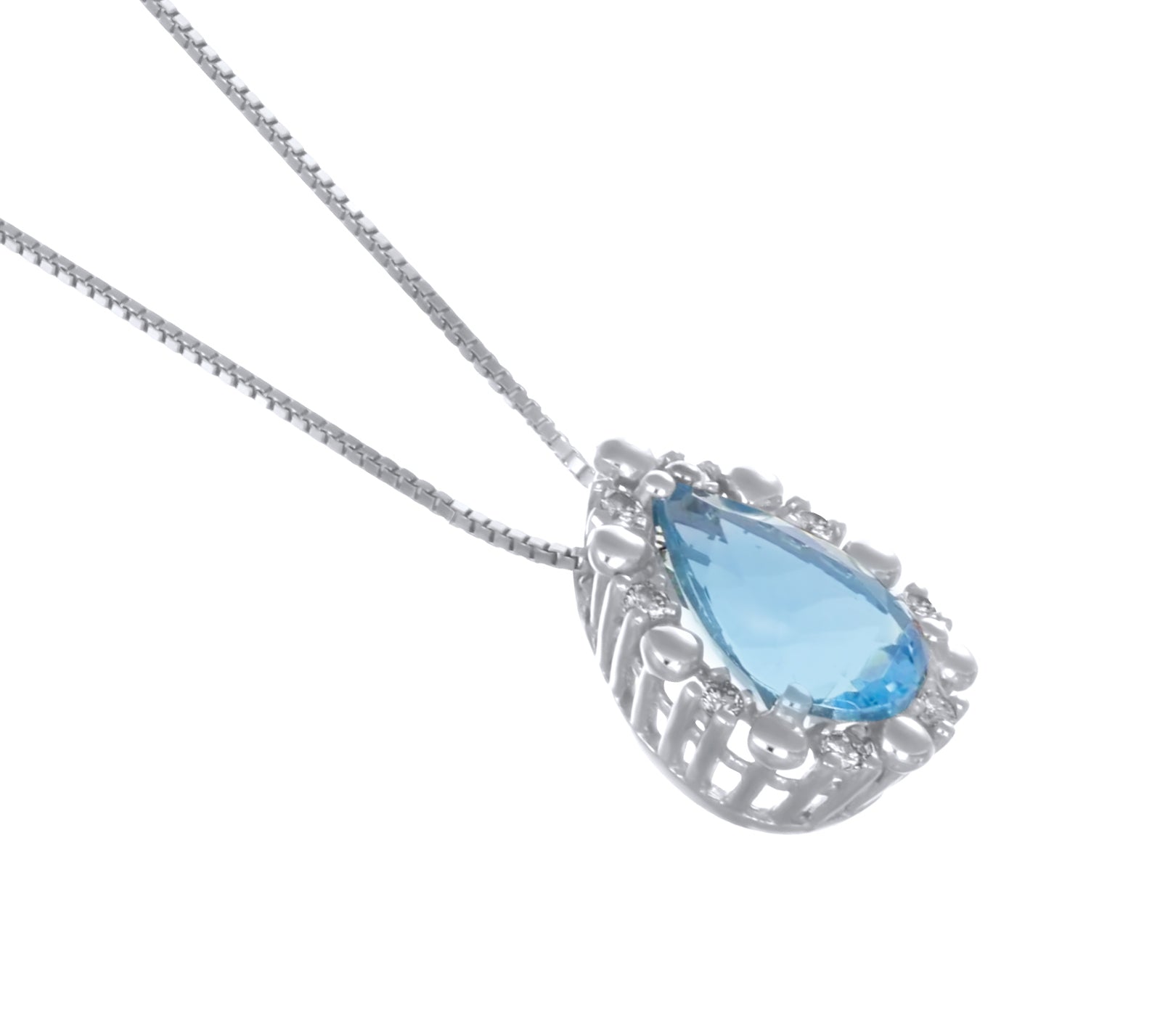 Collana con ciondolo - 18 carati Oro bianco - 2.42ct. tw. Topazio - Diamante