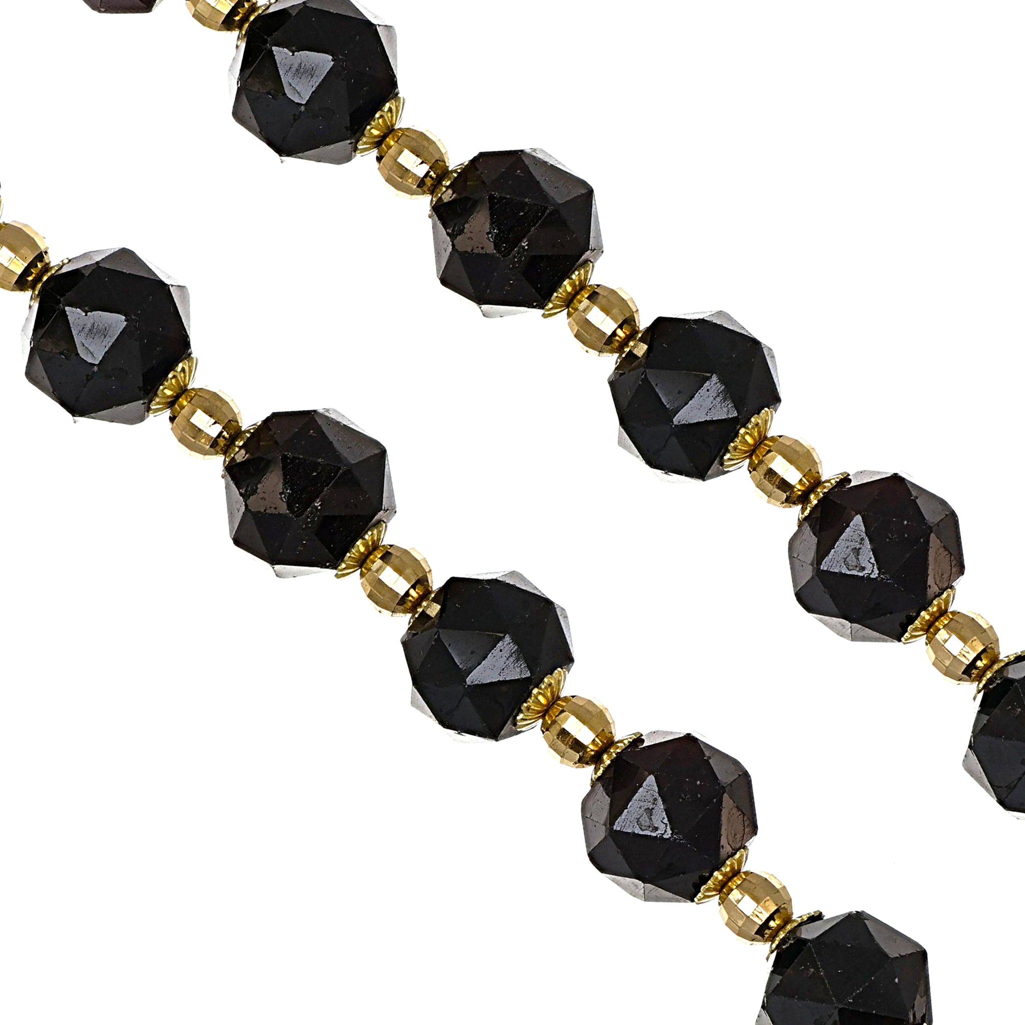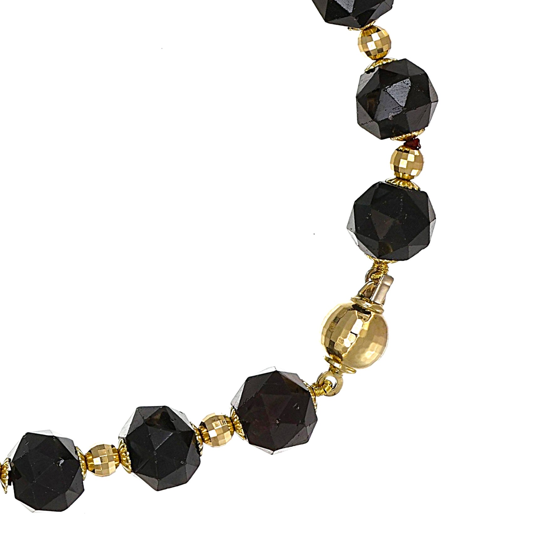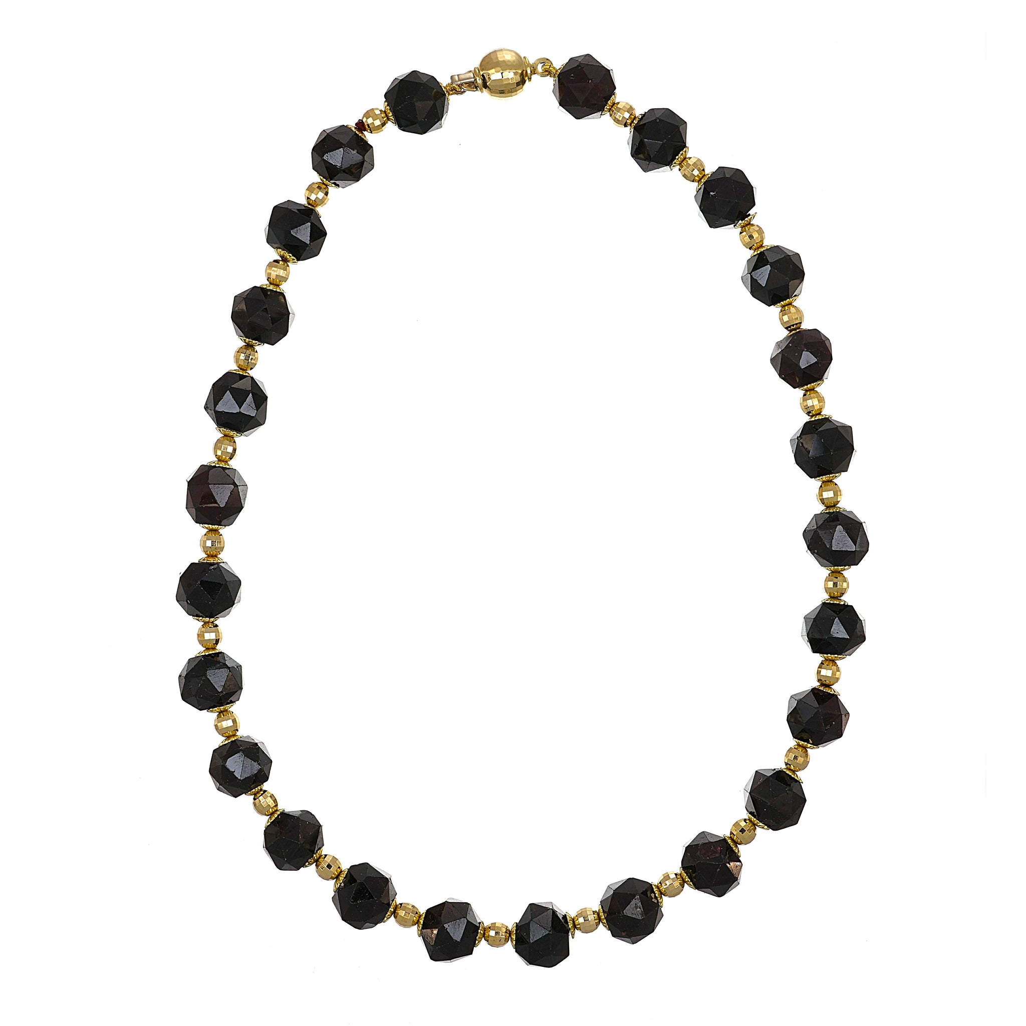 Collana di n 25 Granato da 6.50 Ct l una con chiusura e palline in Oro giallo 18 carati