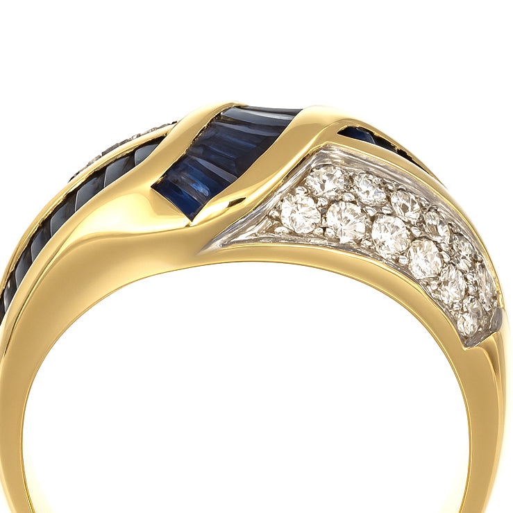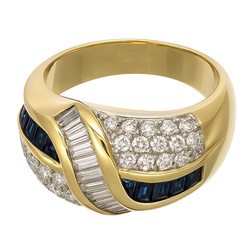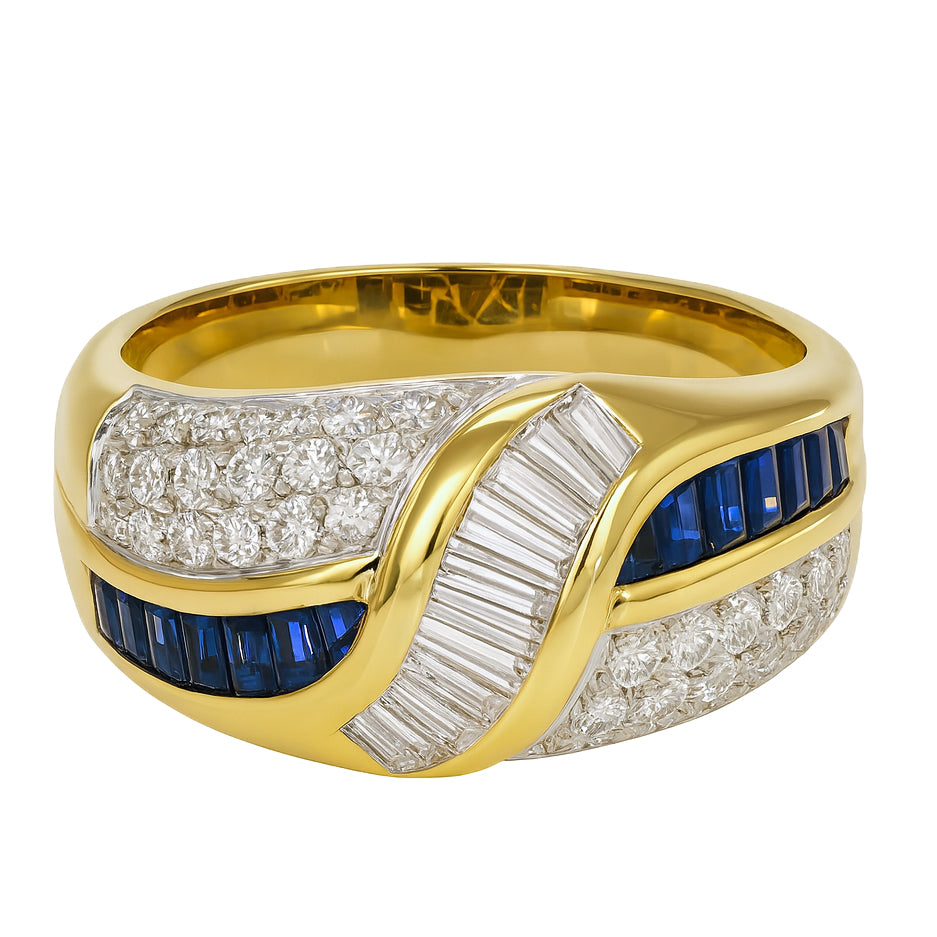 Anello in Oro giallo 18 carati con n 15 Zaffiri da 0.30 Ct tot e n 49 Diamanti da 1.18 Ct tot