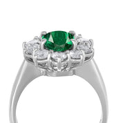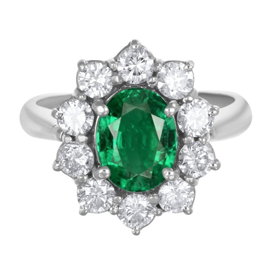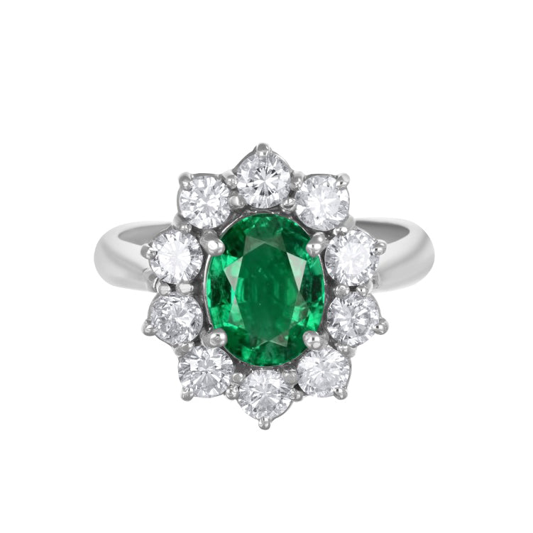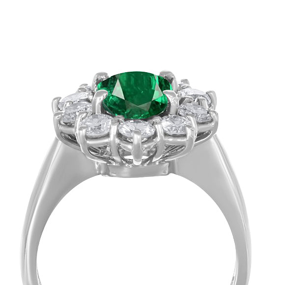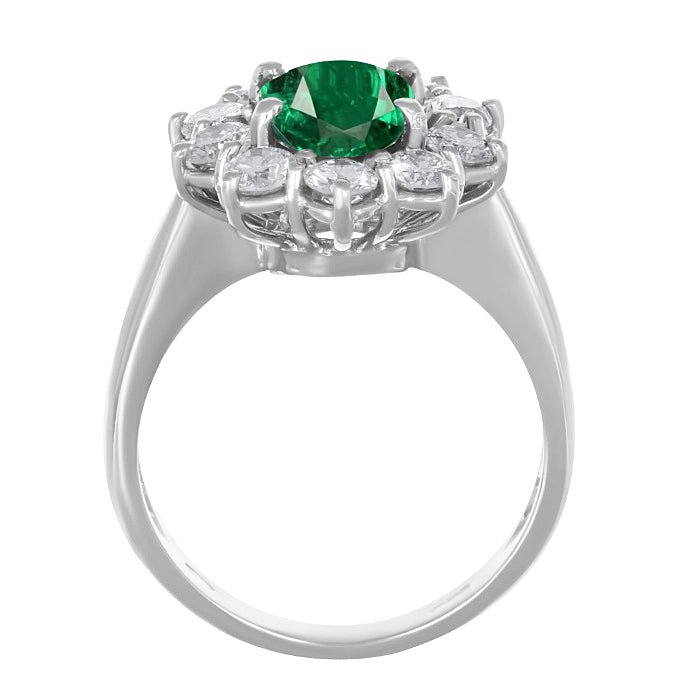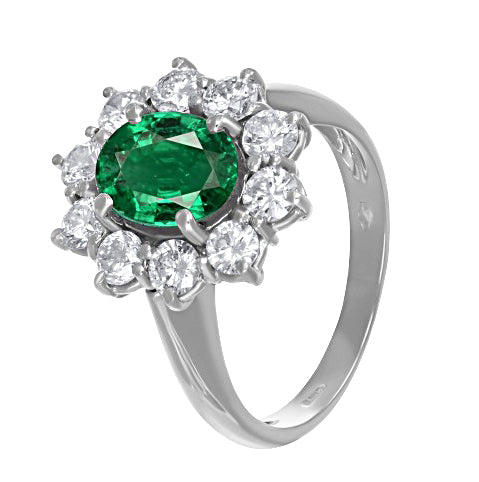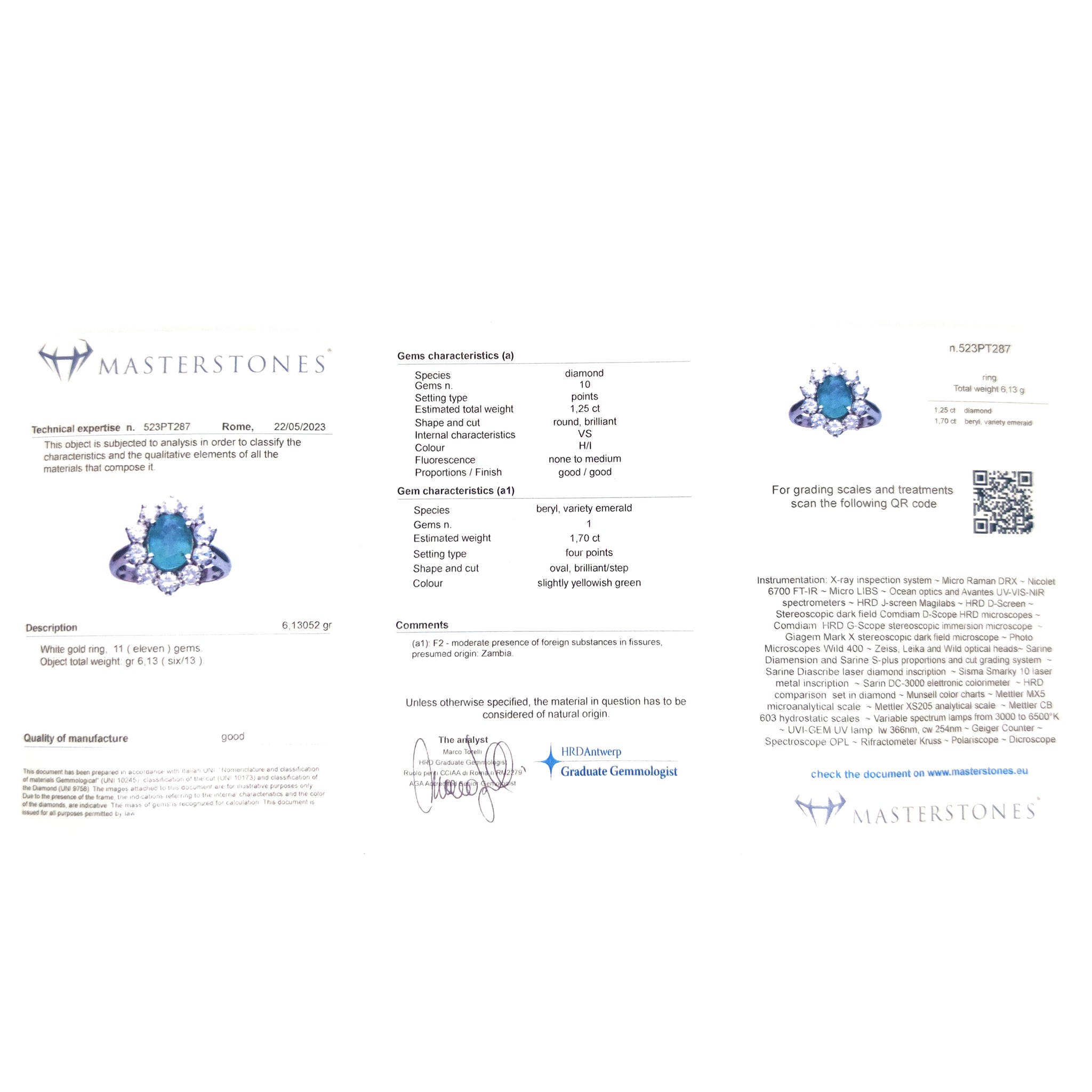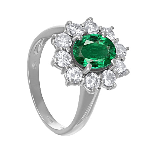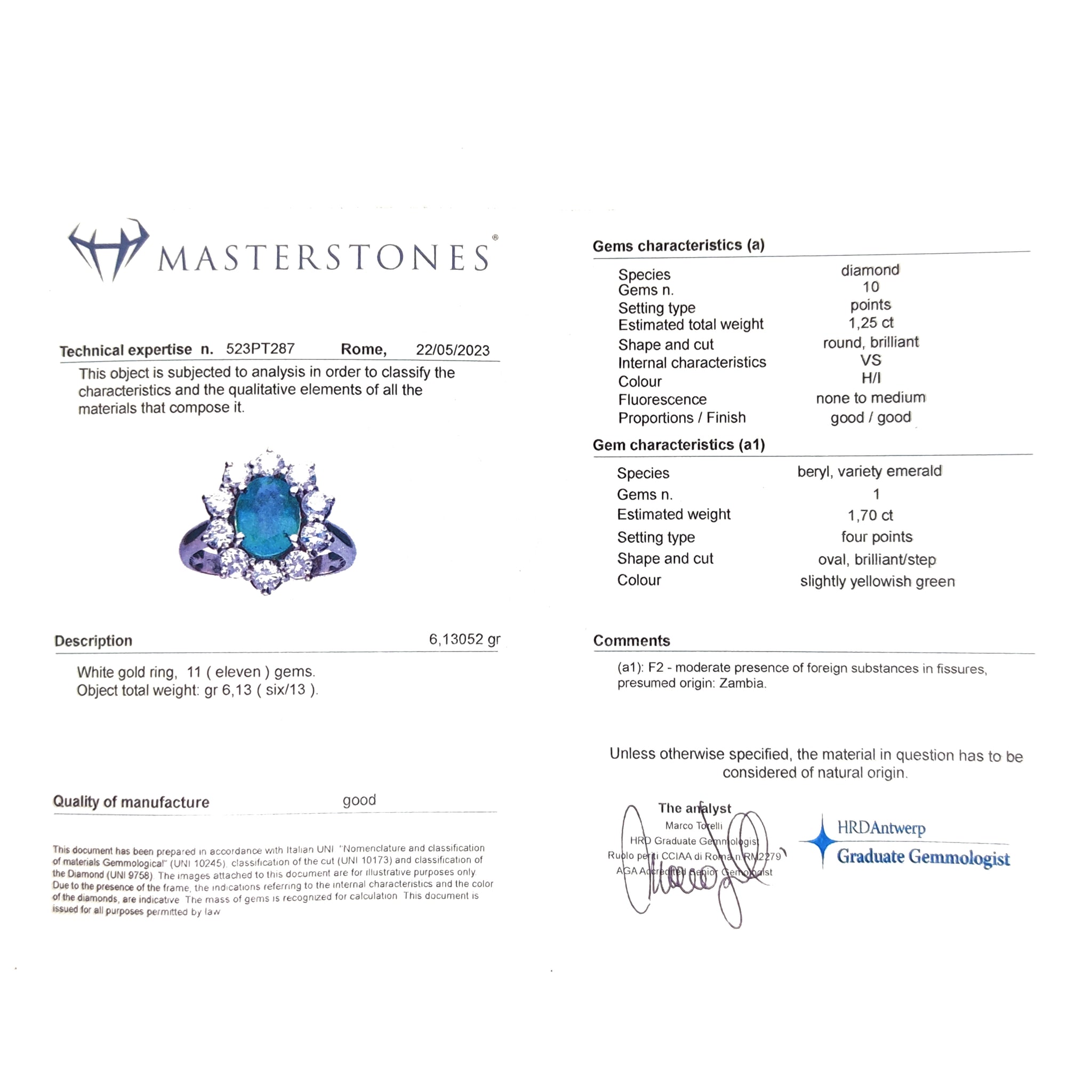 Anello in oro bianco 18 carati con n 1 Smeraldo da 1.70 Ct e n 10 Diamanti da 1.25 Ct tot