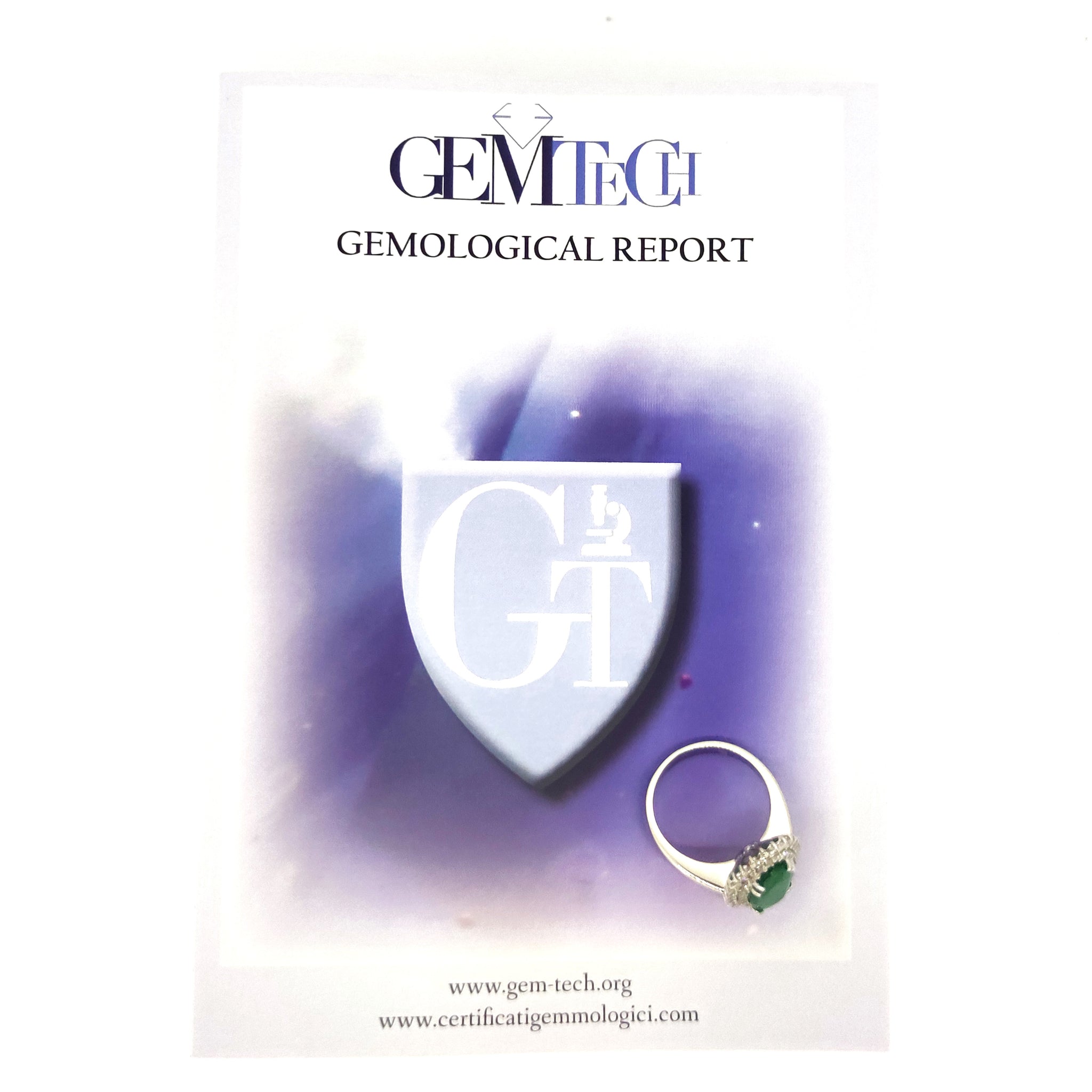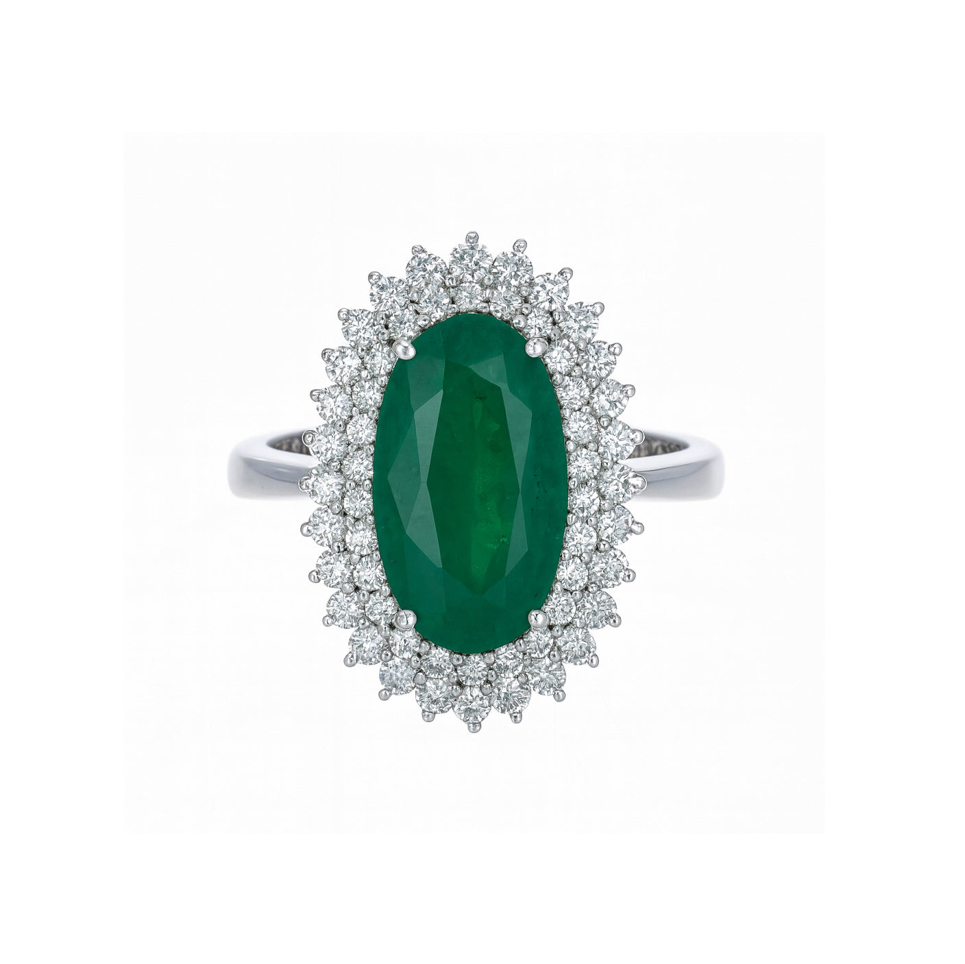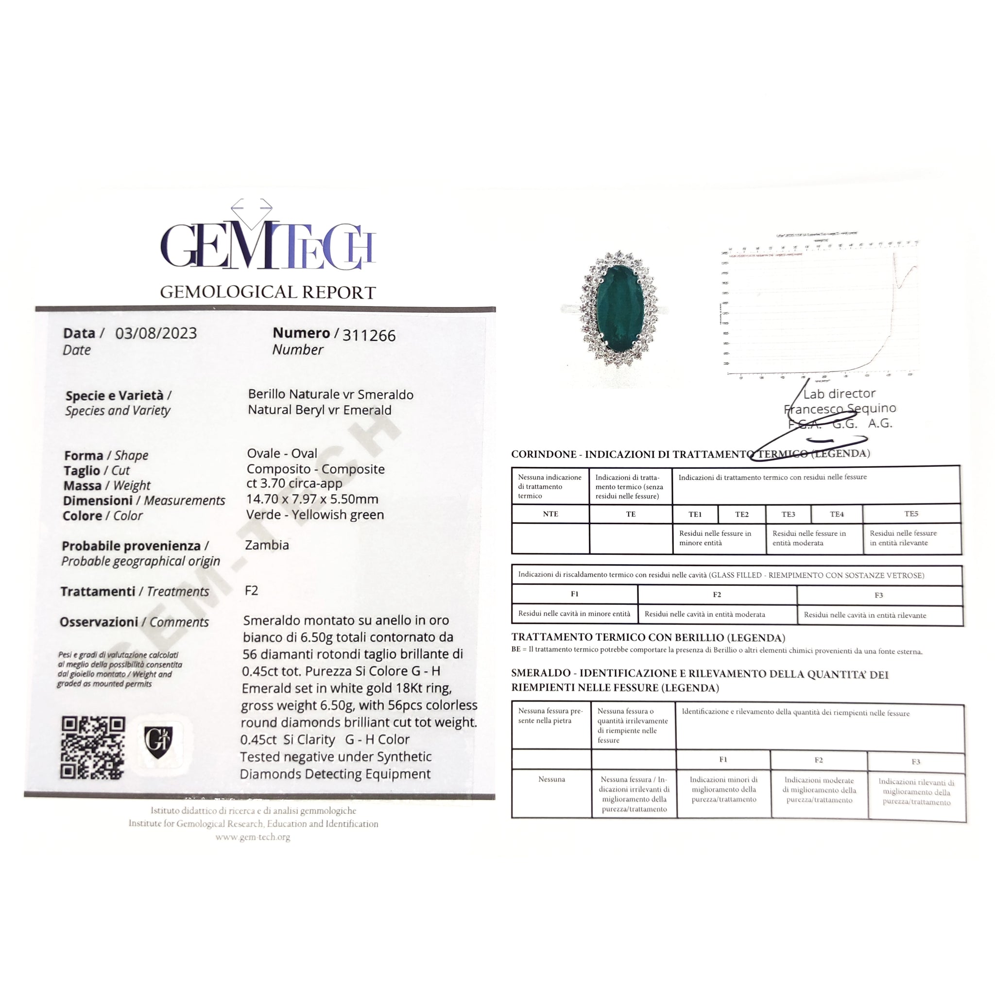 Anello in oro bianco 18 carati con n 1 Smeraldo da 3.70 Ct e n 56 Diamanti da 0.45 Ct tot