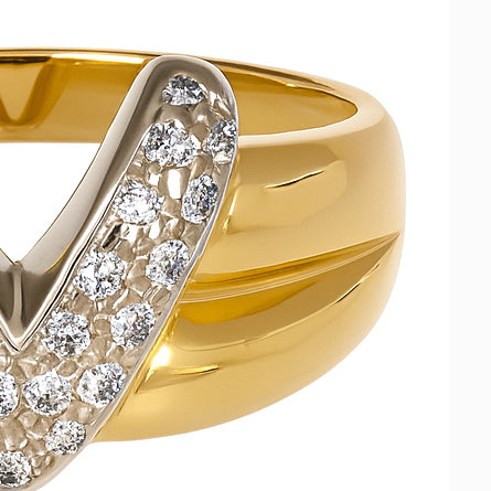 Anello in oro giallo , Oro bianco 18 carati con n 26 Diamanti da 0.13 Ct tot