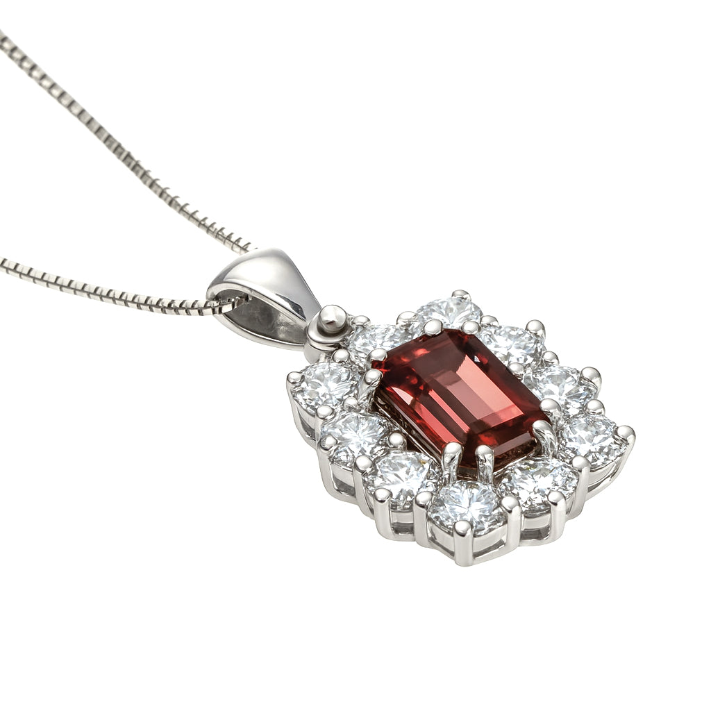 Collana con Ciondolo in oro bianco 18 carati con n 1 Tormalina 0.63 Ct e n 10 Diamanti da 0.81 Ct tot