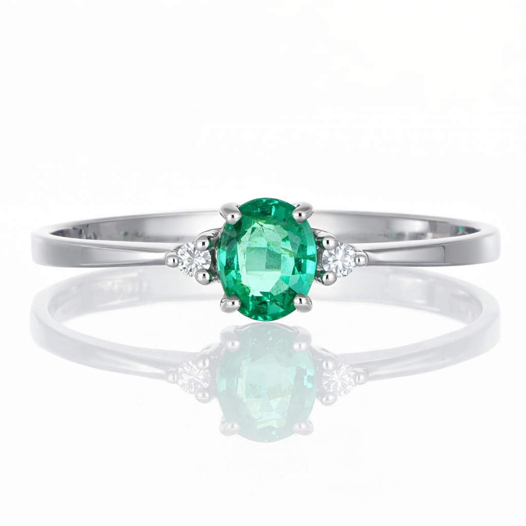 Anello in oro Bianco 18 carati con n 1 Smeraldo da 0,45ct e 2 Diamanti da 0,04 ct tot