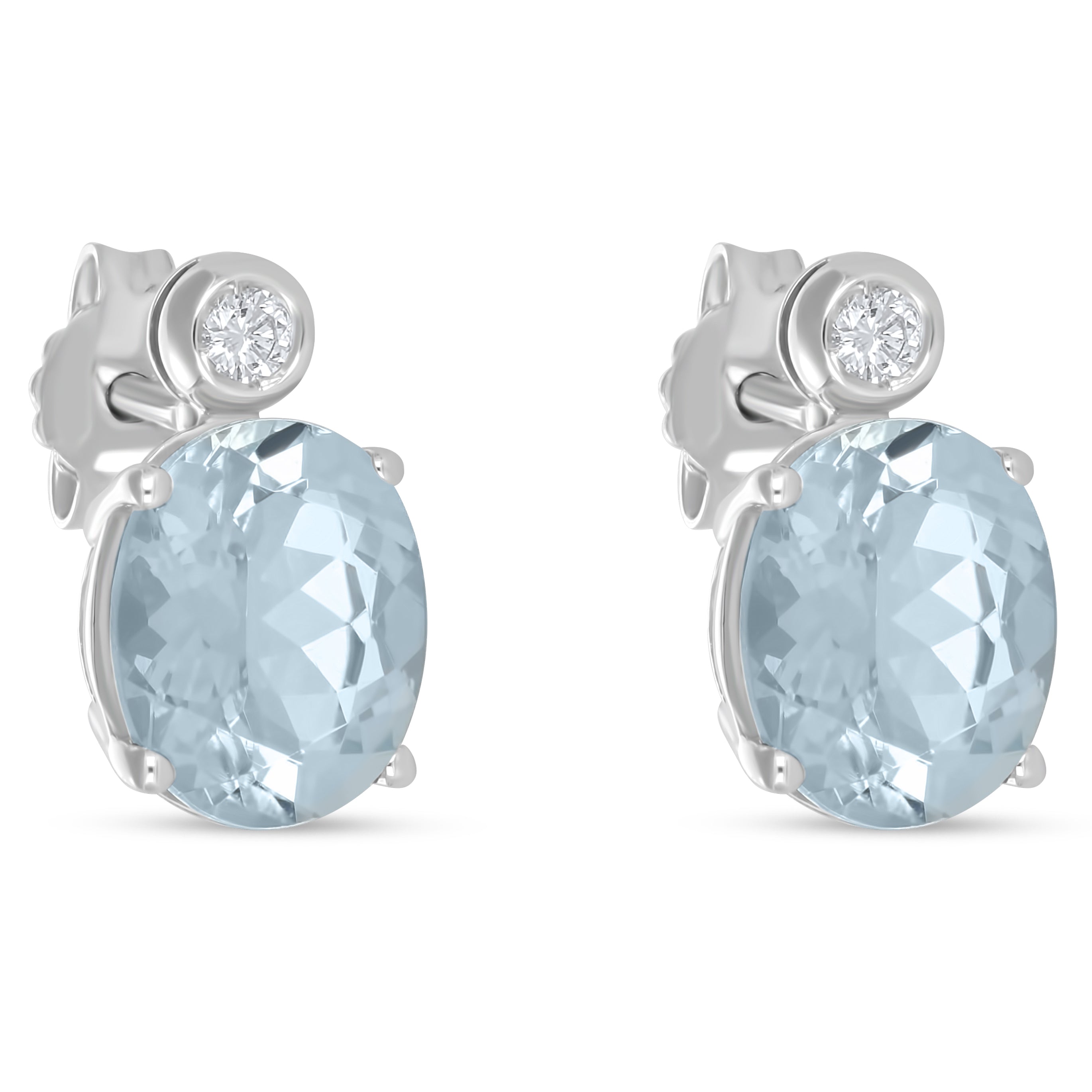 Orecchini in oro bianco 18 carati con n 2 Acquamarina 4.70 Ct tot e n 2 Diamanti da 0.10 Ct tot